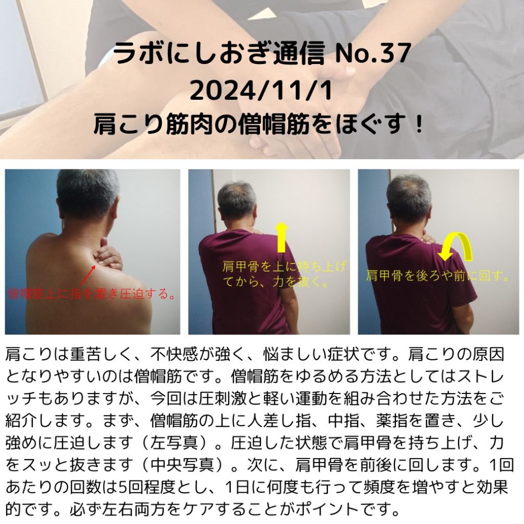 今回ご紹介する方法は、オフィスでも手軽にできる簡単なケア方法です。「もまないとコリは取れない」と感じている方も多いかもしれませんが、僧帽筋を圧刺激を加えながら肩甲骨を動かすことで、徐々にほぐれていきます。ただし、圧刺激の部位が重要です。コリを感じる部分や硬さのある箇所に指を置くことがポイントとなります。柔らかい箇所に指を置いても十分な効果は得られません。