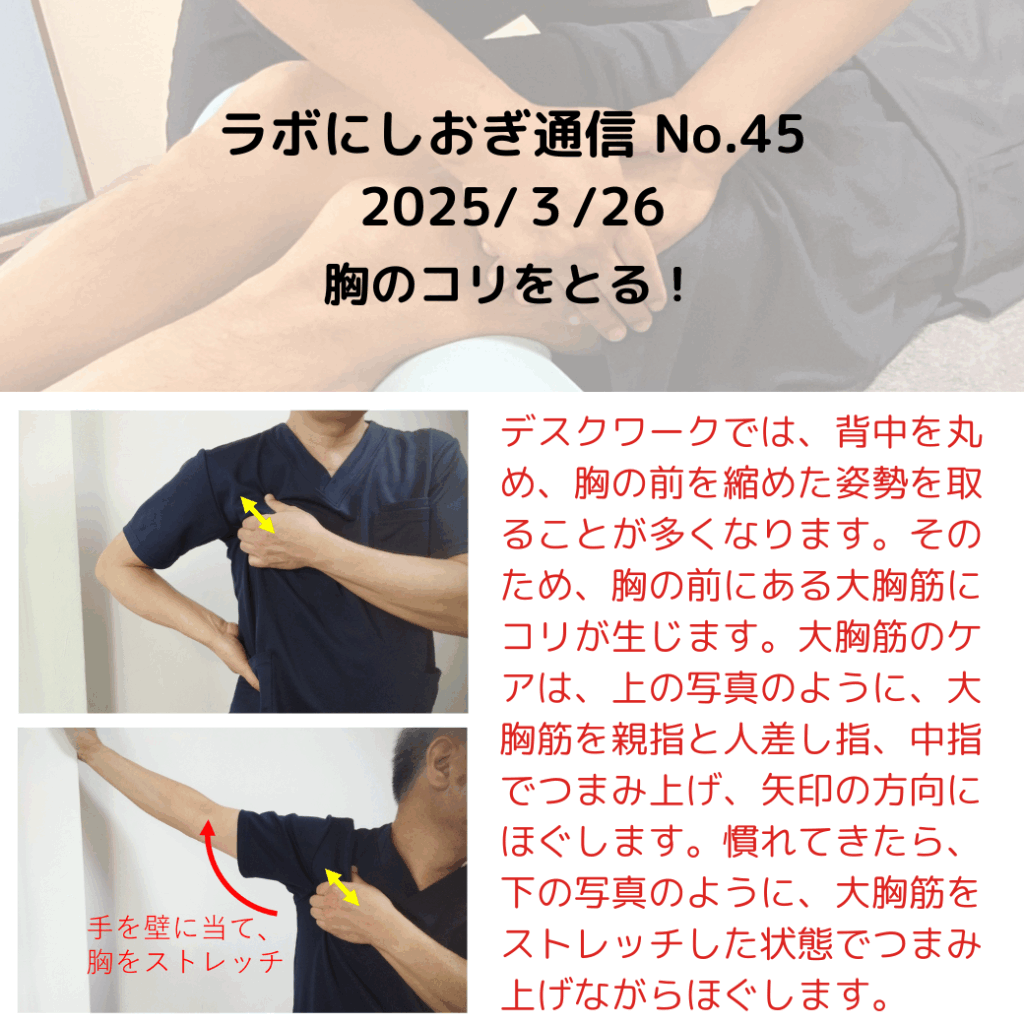 デスクワーク中心でお仕事をされている方は、この筋肉がこりやすいため、ぜひセルフケアにお役立てください。