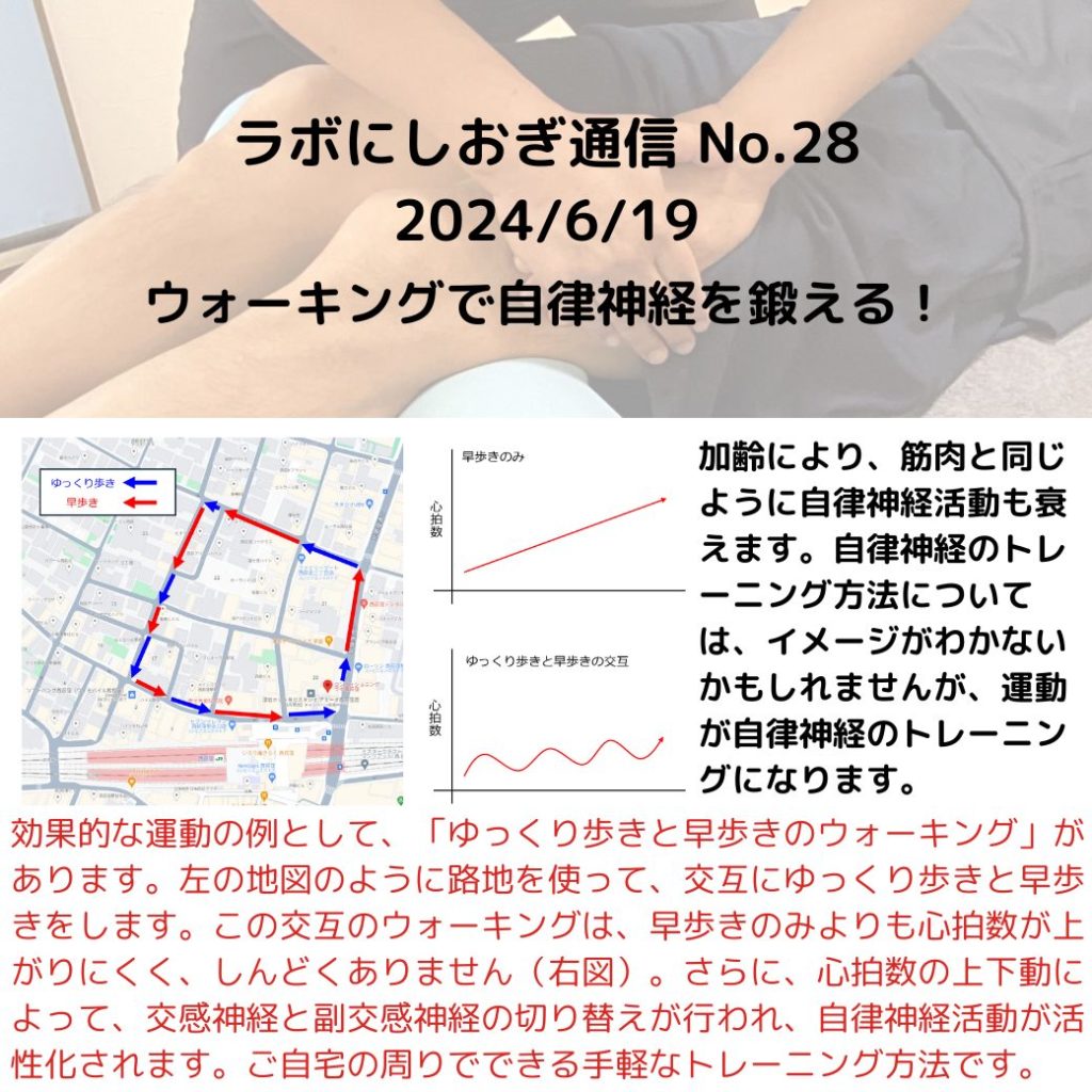 自律神経の調整では、深呼吸やリラックス、マッサージ、規則正しい生活などが一般的に知られています。しかし、これらは積極的な自律神経のトレーニングとは言えないかもしれません。自律神経活動は、整えるだけでなく、交感神経と副交感神経の切り替えを促すことが重要です。そのためにウォーキングは良いトレーニングになります。ただし、ただ普通にウォーキングするだけでは積極的なトレーニングにはなりません。緩急をつけたゆっくり歩きと早歩きの交互ウォーキングは効果的です。緩急をつけることで心拍数が上がりにくくなり、しんどさも少なくなりますので、続けやすいです。ぜひお試しください。